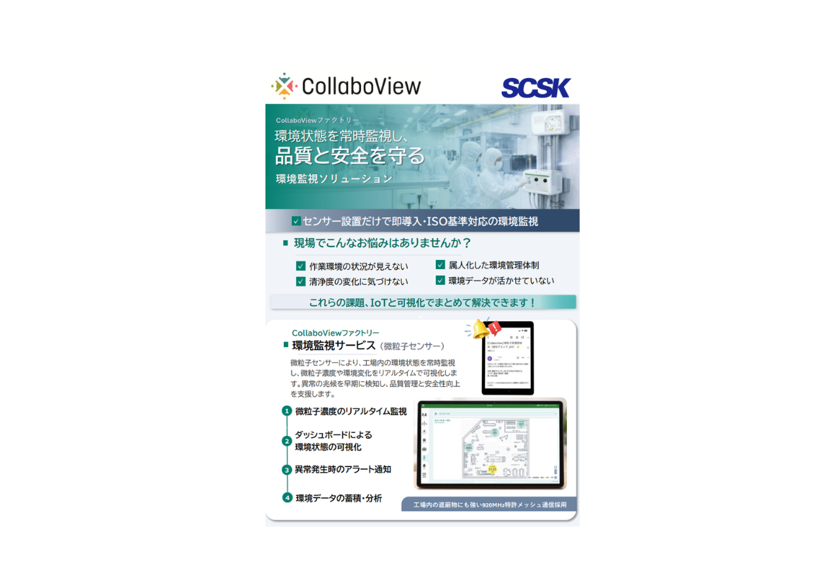 微粒子センサーにより工場内の環境状態を常時監視し、品質管理や異常検知を支援する環境監視サービスの概要をご紹介