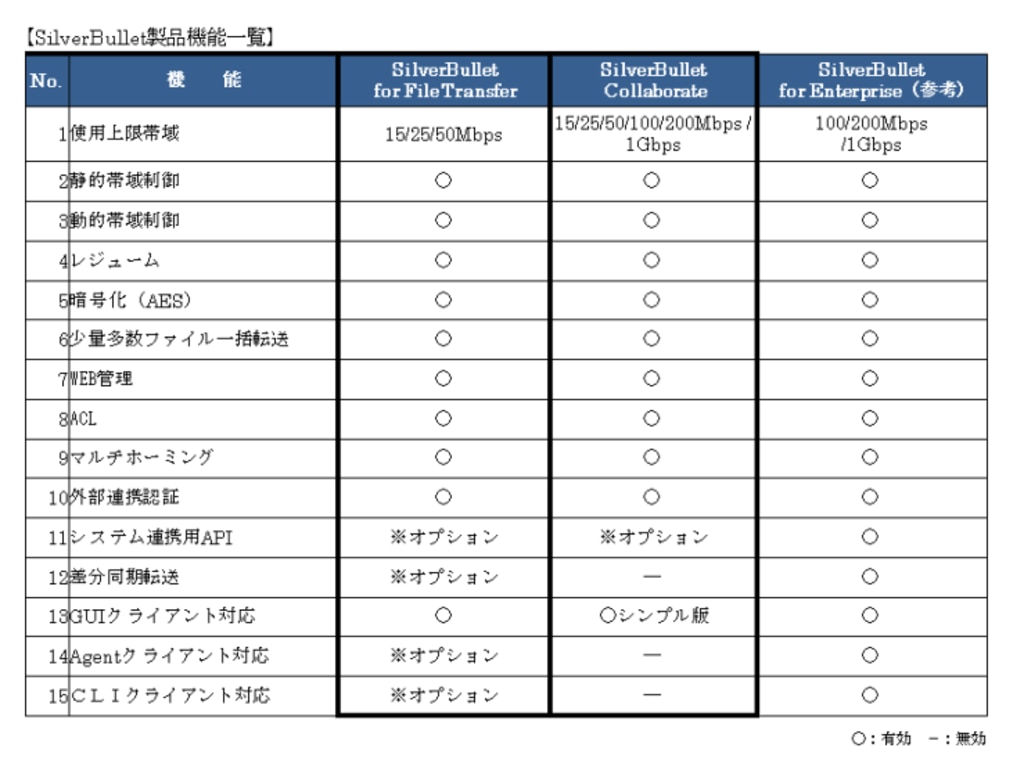 【ご参考:既存製品とSilver Bullet for File Transfer/SilverBullet Cillaborateの機能比較】