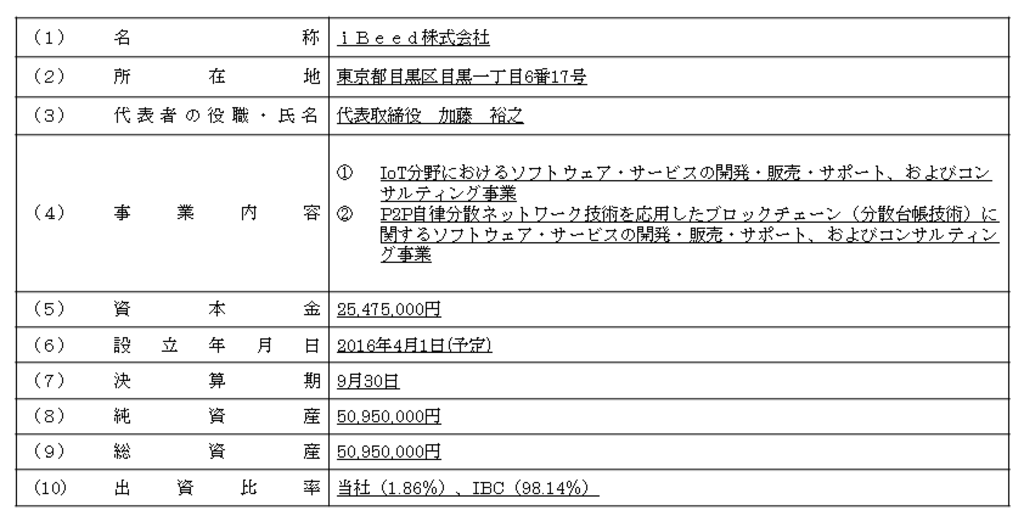 このたび、両社は当社の有するP2P自律分散ネットワーク技術とIBCが提供するコンピューター・ネットワークシステムの性能監視技術の融合により、急速に立ち上がりつつあるIoT市場への新しいIoT情報基盤の開発・提供、およびP2P技術の応用におけるブロックチェーン(分散台帳技術)などの先端的技術開発を目的とした新会社の設立・運営に関する合弁契約を締結いたしました。