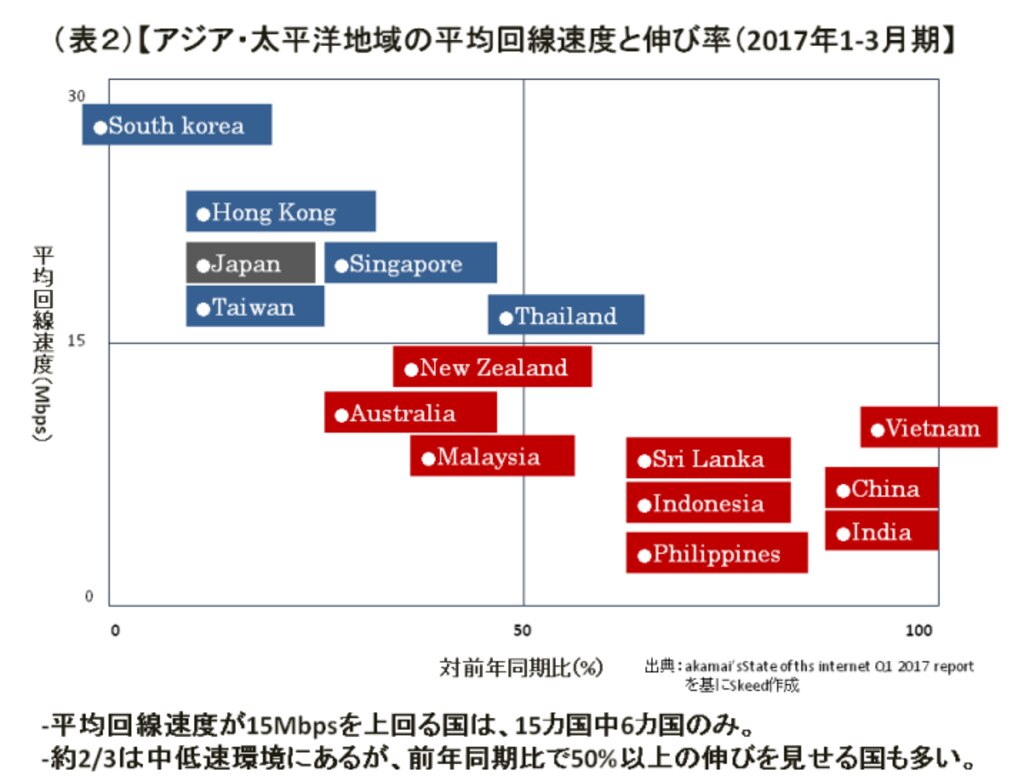 日米で特許を取得※1した独自のネットワーク制御技術に基づき開発したSkeedの高速ファイル転送ソリューションは、インターネット回線の空き帯域を高効率に利用し、TCP比70倍※2を超える実効速度を実現します。その価値はギガバイトを超えるような大容量ファイル転送や回線品質が悪く遅延の大きい海外とのファイル転送・共有などの業務シーンにおいてより発揮されます。 こうした特長は国内企業に留まらず、海外企業においても注目されており、IPトラフィックが急速に増大し、ブロードバンド化を進める世界各地域において今後、急速に需要が高まることが予想されます。(表1参照) 例えば、全世界のIPトラフィックの1/3を占め、今後も大きな成長の見込まれるアジアでは、中国が2017年までの3年間に合計1兆元以上を投資し、大部分の都市部家庭における100Mbpの光ファイバ接続環境、主要都市におけるブロードバンド平均アクセス速度30Mbps超、80%以上の行政村における光ファイバ開通、4Gネットワークの全面普及等の実現に取り組むと発表しています。インドでは「デジタル・インディア計画」を推進し2018年度までの5年間で予算は総額1兆1,300億INRを計画するなど、回線環境の大幅な改善が見込まれます※3。(表2参照) Skeedはこうしたアジア地域における高速ファイル転送ソリューションの需要拡大を睨み、8月1日付けで高速ファイル転送ソリューションの製品ラインナップと価格体系を見直し、月額300円からのクラウドサービスをはじめ、より分かり易くかつお求めやすい価格体系・提供形態に改訂します。 本改訂により、これまで動画など大容量ファイルのアップロードや海外拠点、関係先とのやり取りに日数や手間、コスト負担が重く業務上の制約となっている中小・SOHO企業から個人事業主まで、国内外を問わずより幅広い顧客層への利用拡大を目指します。 ※1:日本特許第5152940号「バルクデータを効率的に転送するためのデータ転送方法」、米国特許US 9,590,912 B2「DATA TRANSFER METHOD FOR EFFICIENTLY TRANSFERRING BULK DATA」 ※2:日本-ドイツ間での100MBのファイル転送における実測値 ※3:平成28年版 情報通信白書より
